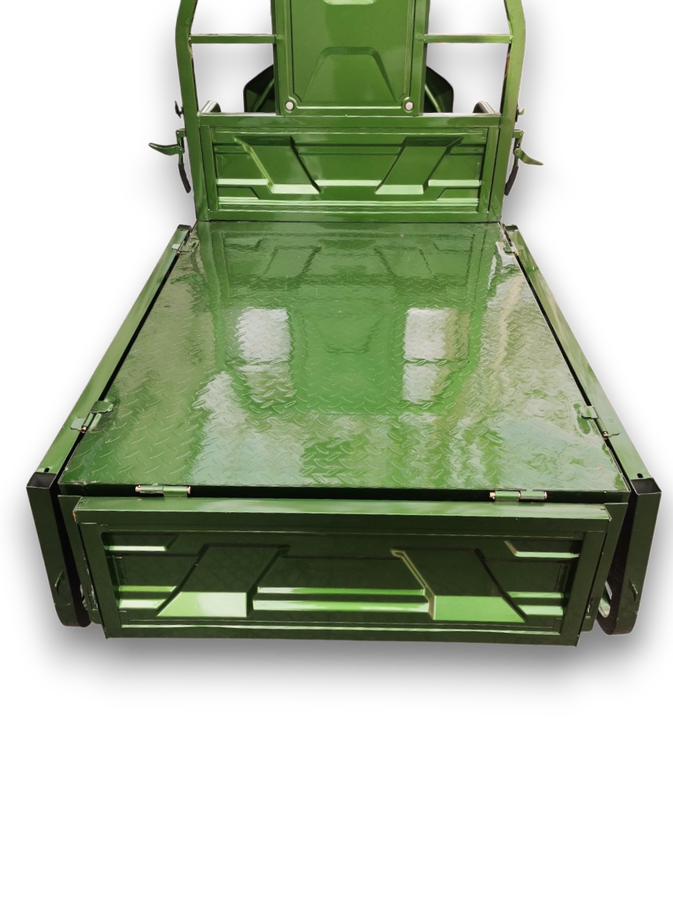 • 🔀 Palanca Dual de Sobremarcha para Pendientes • 🔋 Autonomía: • 60v20ah: 35 km • 60v32ah: 50 km • 60v45ah: 70 km • 🚀 Velocidad Máxima: 45 km/h • 🔄 Transmisión: Automático • 🏍️ Acelerador: Manubrio • 🦶 Frenos: Pedal de Freno • 📏 Medidas del Cajón: Largo 1.30 m x Ancho 95 cm x Alto 50 cm • 🛠️ Cajón: Abatible con Compuertas Desarmables • 🛞 Neumáticos Todo Terreno: • Delantero: 3.75 - 12R • Trasero: 3.75 - 12R • 🔋 Baterías: 5 (Vida útil: 2 años, luego empiezan a reducir su autonomía) • ⏱️ Tiempo de Carga: 6 horas (0-100% de carga) • 💰 Costo por Carga Completa: 280 pesos • 🔧 Suspensión: Doble Delantera y Trasera Hidráulica • ✋ Freno de Mano • ✅ Garantía: 6 meses • ✔️ Homologado • 🔄 Función de Retroceso